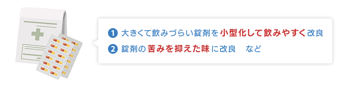 有効性、安全性および品質については同等で、さらにジェネリック医薬品は服用しやすいお薬へと製造上の工夫が図られています。