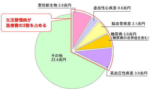 生活習慣病は、生活の乱れを正すことで予防が期待できる病気です。生活の改善を図って生活習慣病を予防すれば、医療費を抑えることができ、将来的にはみなさんにご負担いただいている健康保険料を減らすことにもつながるかもしれません。