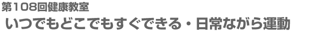 平成25年7月23日、TJKプラザにおいて、第108回健康教室を開催しました。今回は、「日常ながら運動」のパイオニアである長野茂氏を講師にお招きし、日常生活のなかで無理なく、手軽に実践できる「日常ながら運動」をご紹介いただきました。その様子をレポートします。