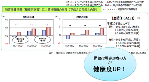 このように、健診データ、医療費のいずれにおいても、保健指導を受けることにより確かな効果が得られています。