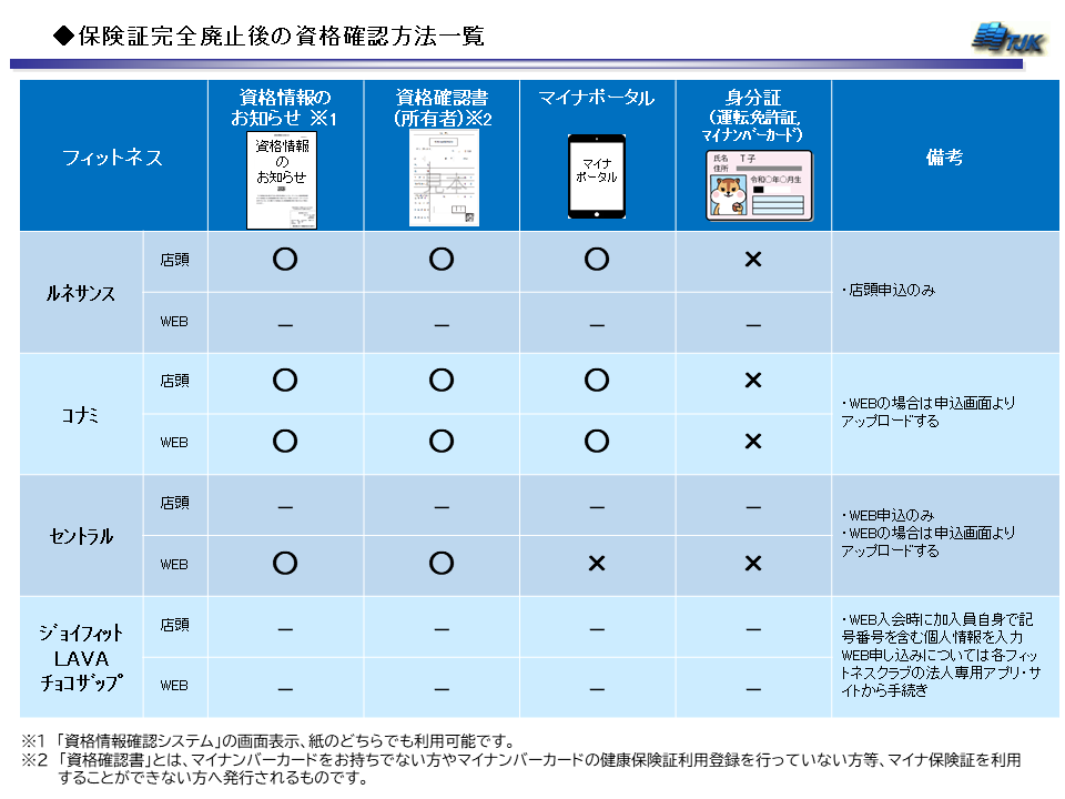 令和7年12月2日の健康保険証廃止に伴い、従来は健康保険証の提示によっておこなっていた資格情報の確認を、下記一覧の通り変更いたします。