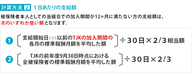 他の社会保険の加入期間がある等で、支給開始日以前に当組合での12ヵ月の標準報酬月額がないときは「計算方法2」を使用します。