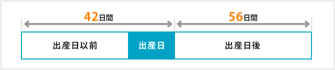 - 多胎妊娠のときは出産日以前98日間、出産日後56日間となります。
