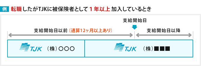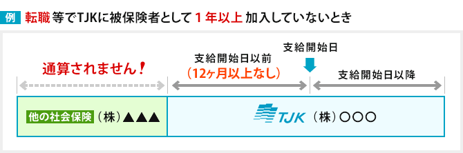 ●支給開始日以前のTJKでの加入期間が12ヵ月に満たないとき