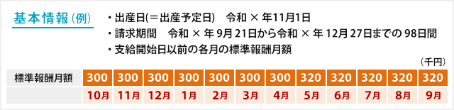- 請求期間は産前42日前から産後56日目までの範囲となります