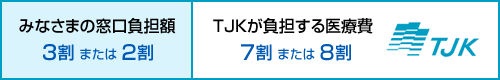 医療機関でマイナ保険証等を提示して受ける治療行為のこと。マイナ保険証等を提示することによりみなさまの窓口負担額は3割または2割(年齢や所得により異なる)となり、残りの7割または8割は医療機関からの請求によりTJKが負担します。