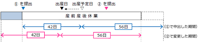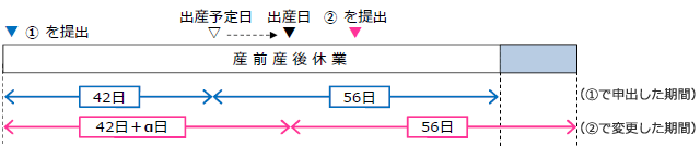 1.産前産後休業を取得する場合、出産により産前産後休業期間が変更となる場合