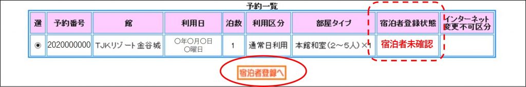 ※確認期限(振替予約時のメールに記載)までに宿泊者登録の手続きを行わなかった場合、予約は自動失効となります。