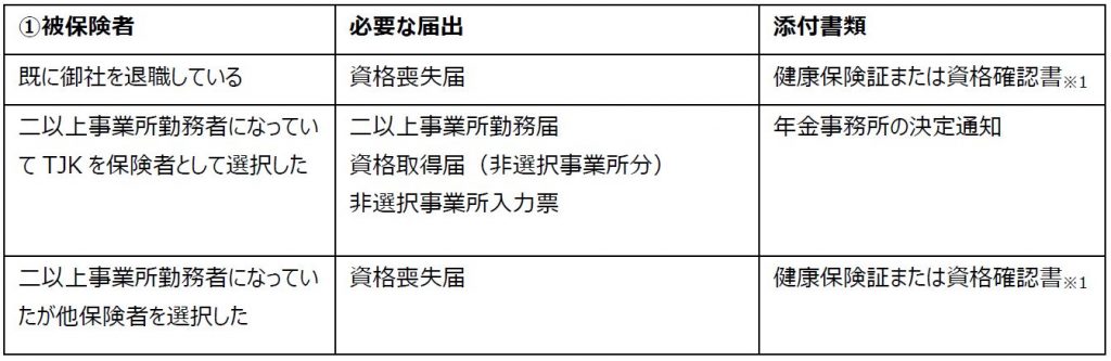 TJKにおいてはこの事務連絡に基づき、資格重複者のいる事業所に対して通知をお送りいたしますので、状況をご確認のうえ、資格喪失・扶養削除のお手続きをお願いいたします。
