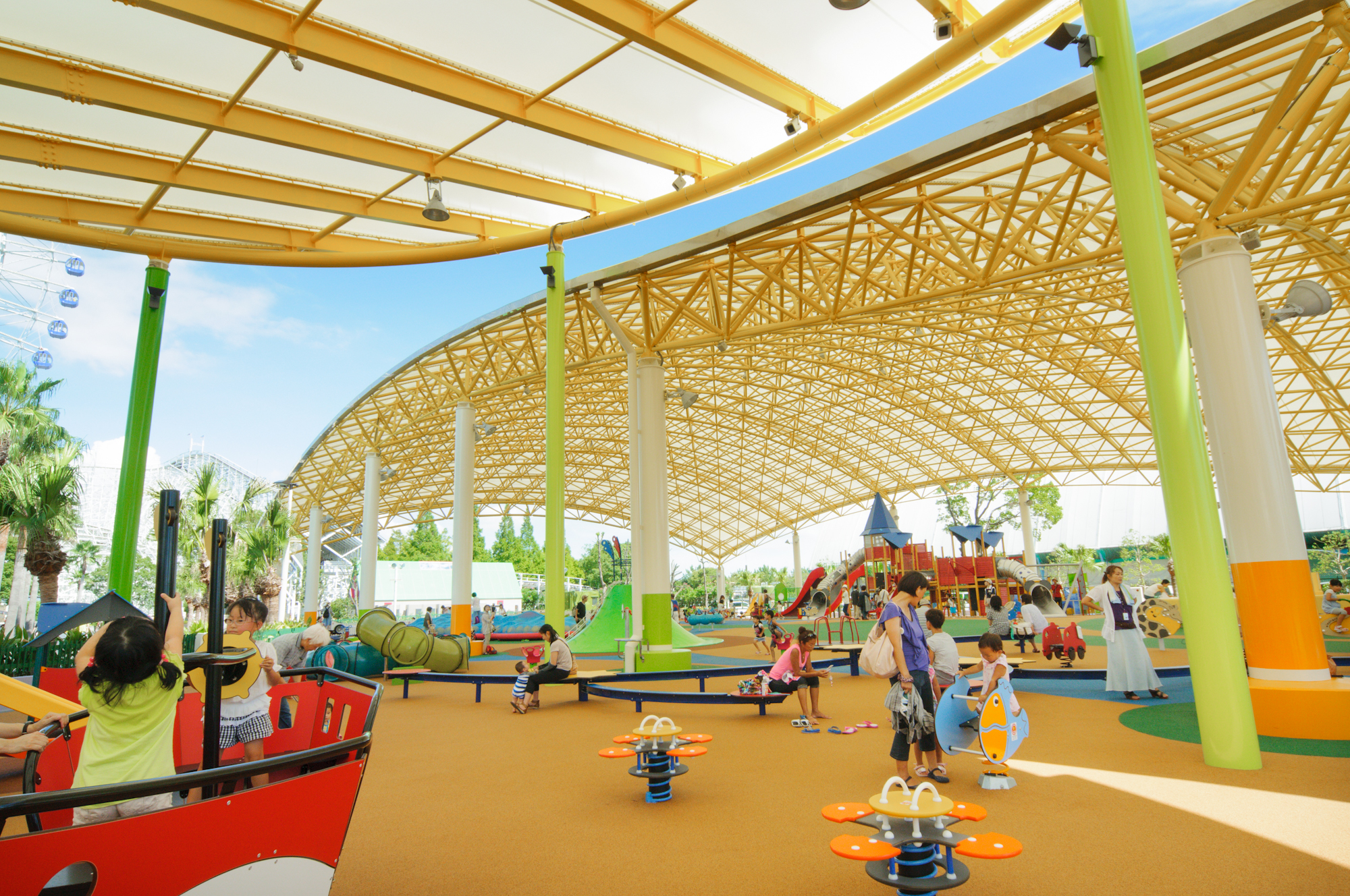 園内には国内最大級の海水プール(夏季)や、スリル満点でスピード感溢れるジェットコースター、小さなお子様でも遊べるキッズタウンなど全世代で楽しめるレジャー施設となっております。