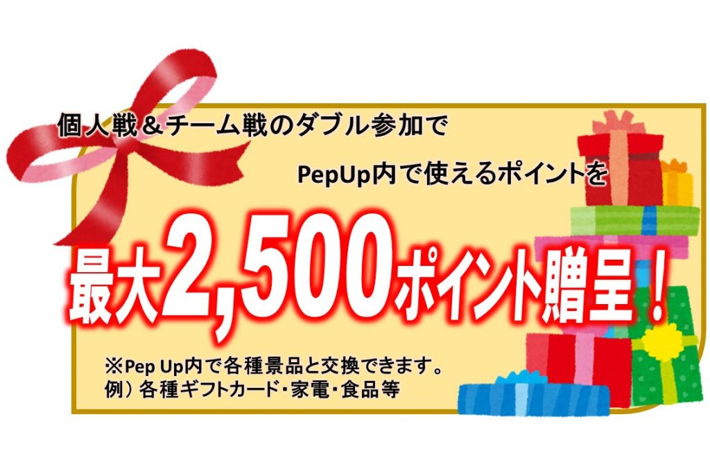 - 個人戦・チーム戦それぞれの達成基準を満たした方全員にPepポイントを贈呈いたします。