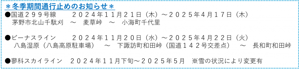 東京方面からお出かけの際は、中央道諏訪南I.Cより八ケ岳エコーライン経由でお出かけください。