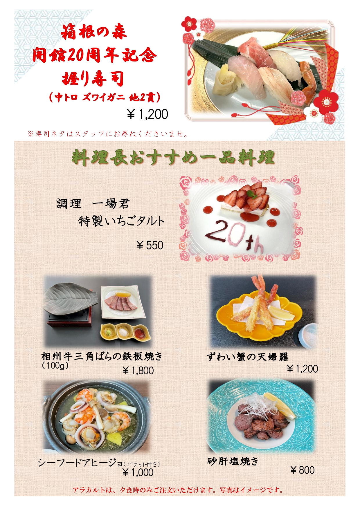 〇 夕食時にお席についてからご注文いただけます。事前のご予約もお受けしております。
