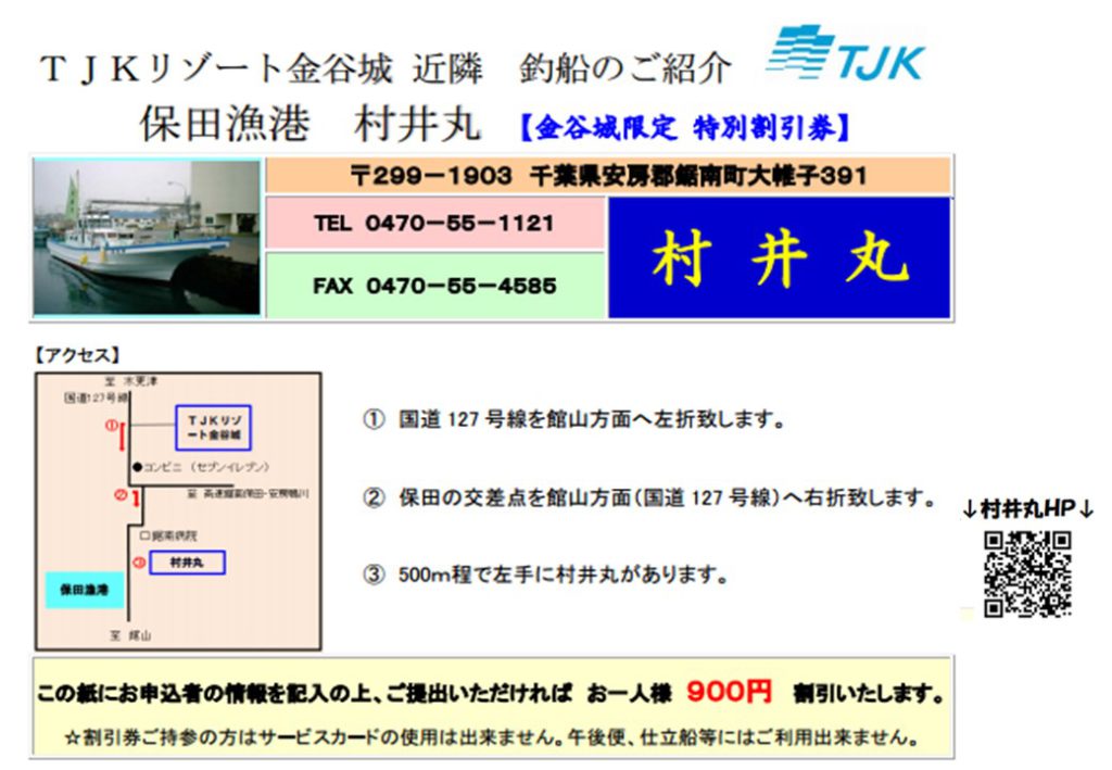 金谷城の近くにある釣り船の割引券をご用意しました。ぜひご利用ください。