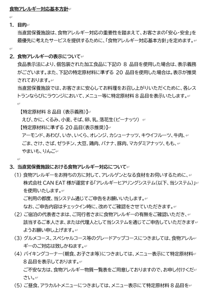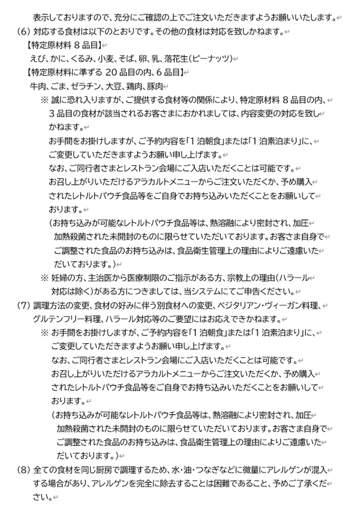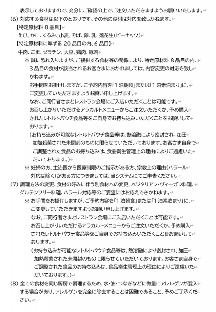 ご宿泊のご予定が確定し、食物アレルギーをお持ちのお客様は