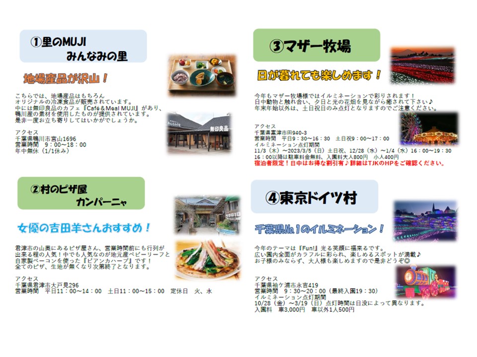 TJKリゾート金谷城の現地スタッフが、周辺観光スポットやイベント情報をお届けいたします。