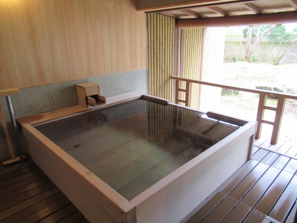 露天風呂や立湯、寝湯など、多彩な湯船のある大浴場のほか、趣の異なる5つの貸切風呂も人気。出雲大社のお参りにも便利です。