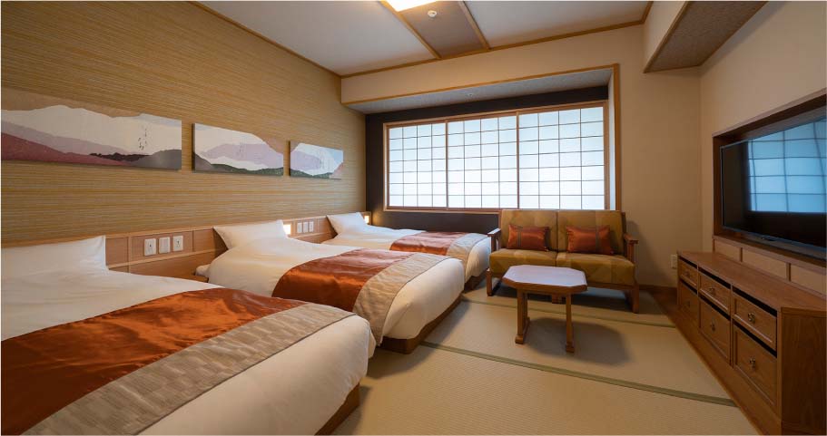 トリプル(29㎡和室+シャワー付+シングルベット3台 1部屋定員3名)/ 3部屋