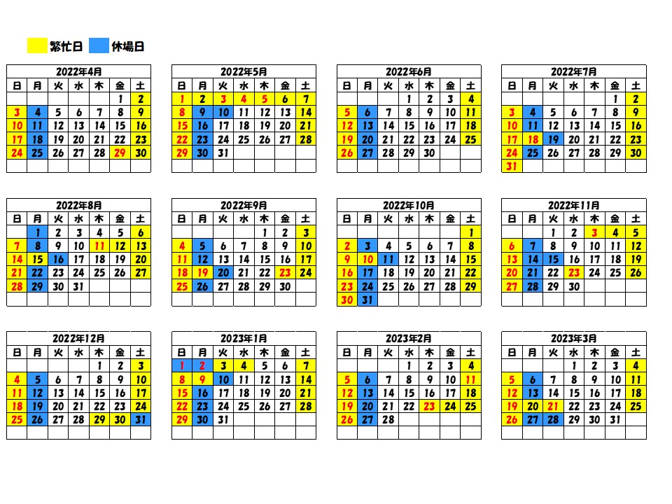 繁忙日につきましては、ゴールデンウイークの中日など、平日でも繁忙日の扱いとなることがありますので、お申し込みの際にお間違えのないようにお願いいたします。